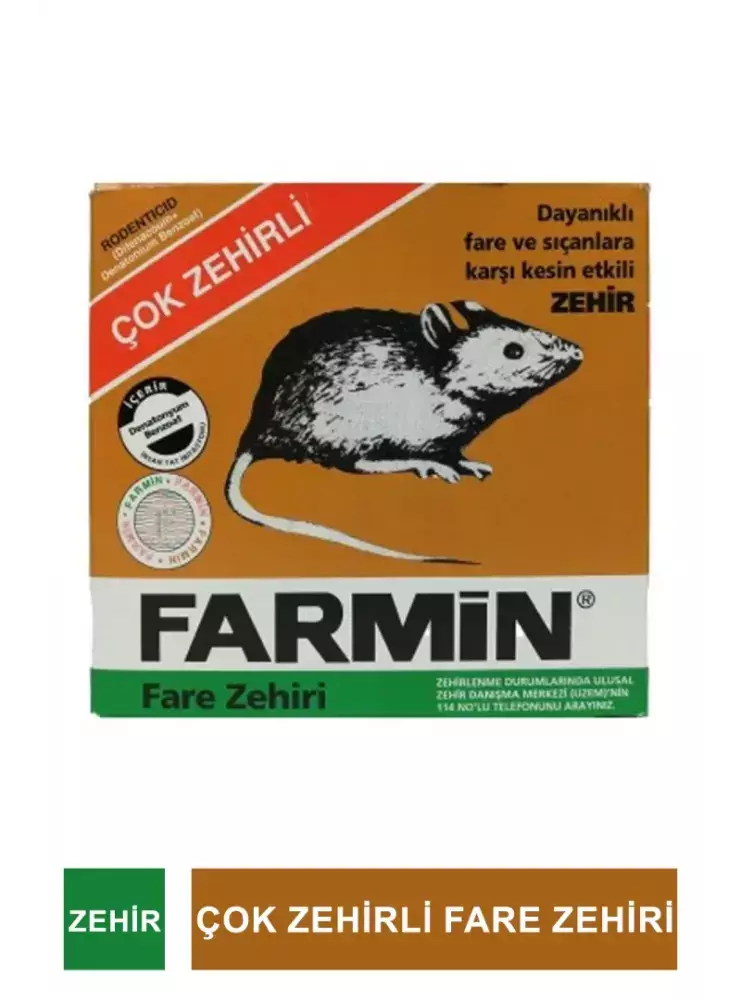 FARMİN fare zehiri ev farelerinde bir torbanın üçte biri (~40gr), sıçanlarda iki torba (~250gr) olarak uygulanır.